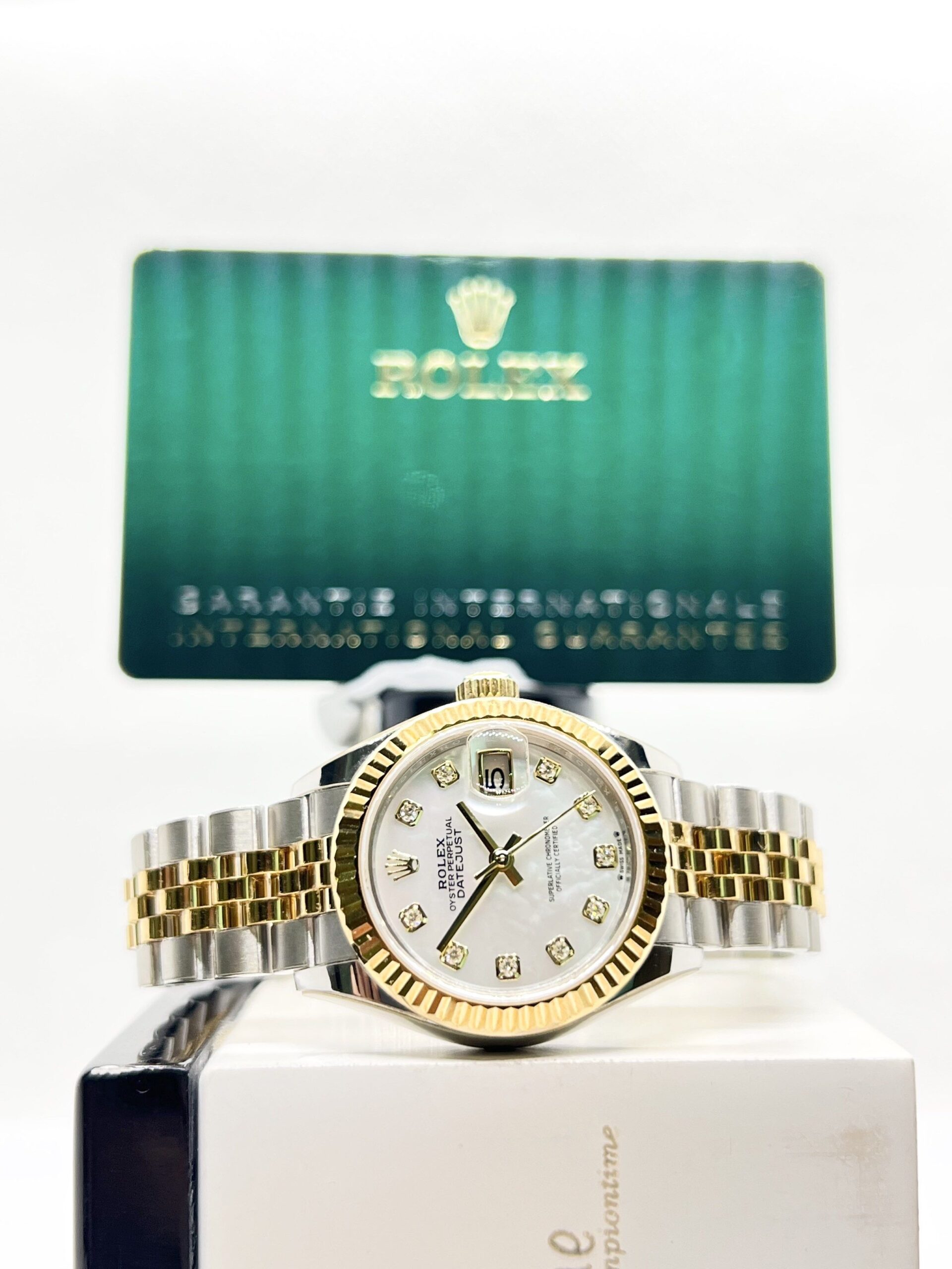 - Dial: White MOP Dial With 10PT Diamond Numerals Index