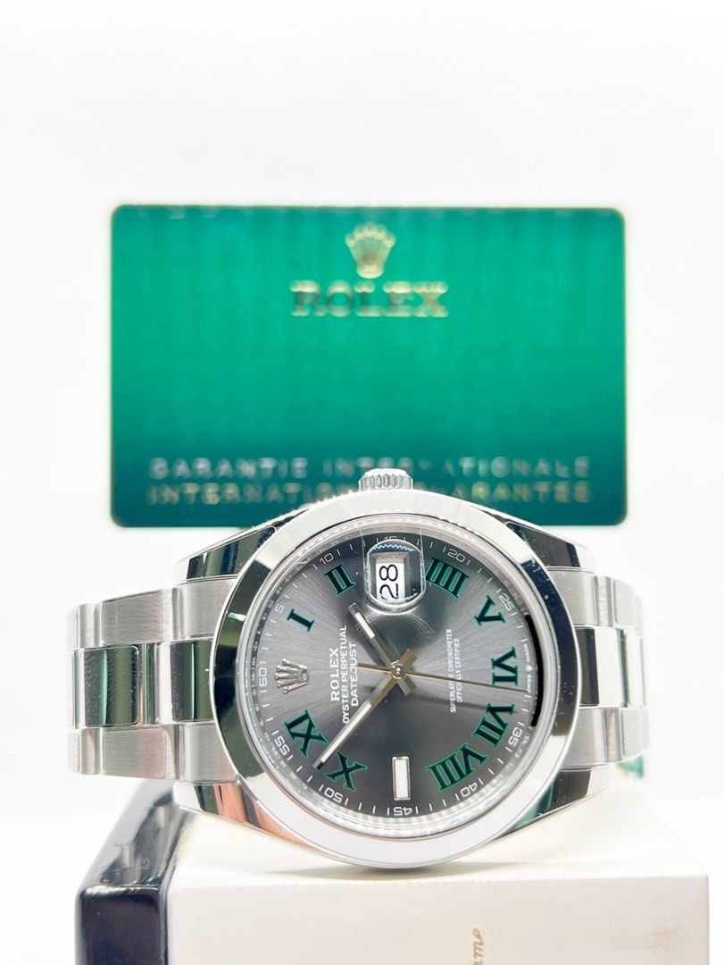 - Dial: Slate Grey Dial With Green Roman Numerals Index