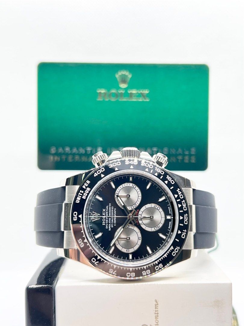 - Bezel: 18ct White Gold With Black Ceramic Tachymetre