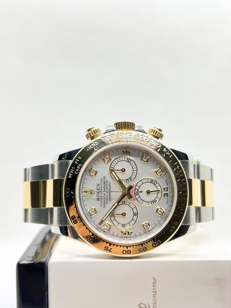 - Dial: White MOP Dial With 8PT Diamond Numerals Index & Sub Chrono Dials